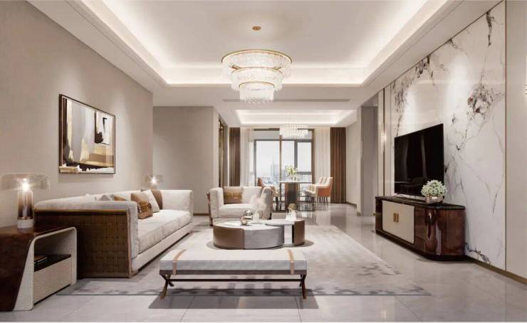 甄选高档大板砖、酒店标准饰面,手工扪布等高端环保材料,营造典雅舒适空间。
