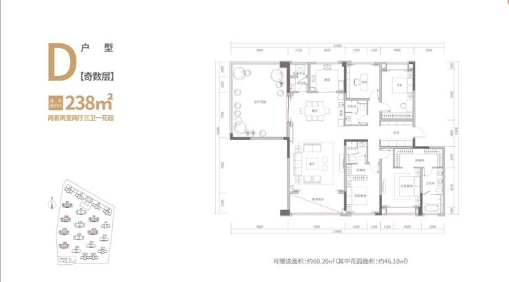 【在售面积】:小高层135-156-222m²,森林花园住宅238-296m²