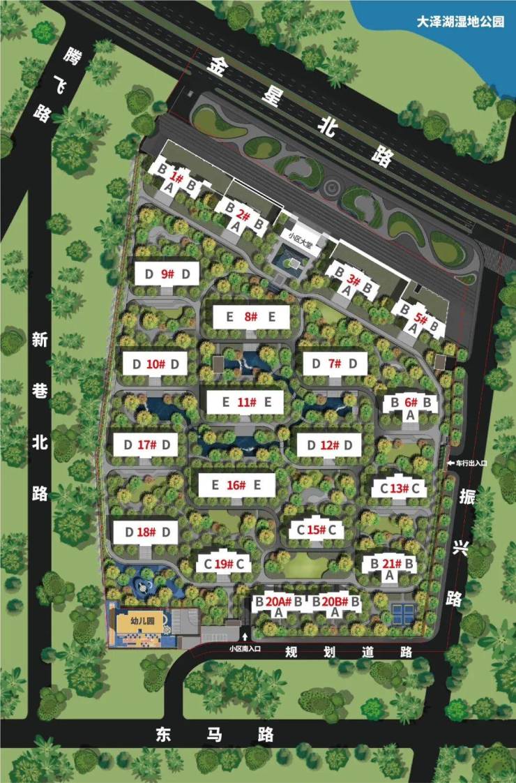 运达大泽湖坐落于金星北路与振兴路交汇处,总建筑面积19.8万平米,容积率2.0,由9栋城市森林花园住宅、10栋阔景小高层组成。项目通过最优的业态功能分区和科学的动线规划设计,将生态大宅、精品园林、社区商业、绿带公园完美融合,为业主打造高品质、低密度、优环境的美好生活。