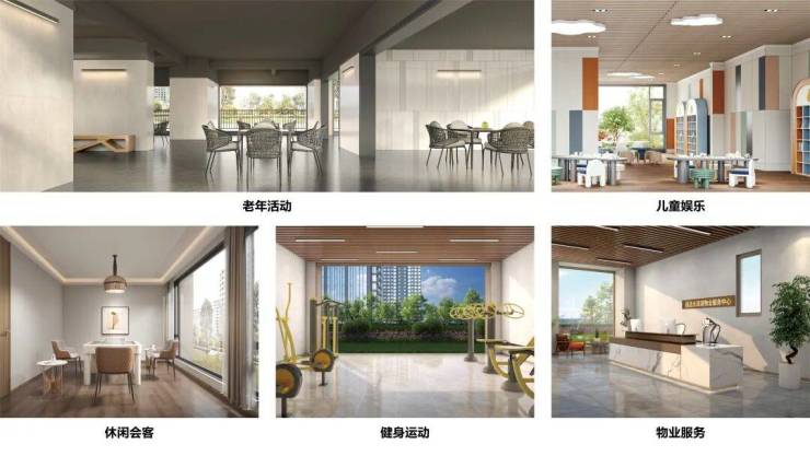老年活动、儿童娱乐、休闲会客、健身运动、物业服务五大主题中心,从亲子陪伴到幸福颐养,从邻里交流到会客亲友,让业主尊享面面俱到的幸福生活。