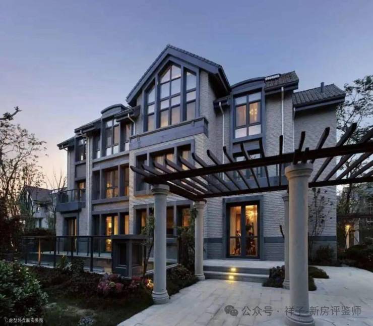 建筑:新中式官邸风格,采用干挂石材+铜艺栏杆,单栋造价超2000万