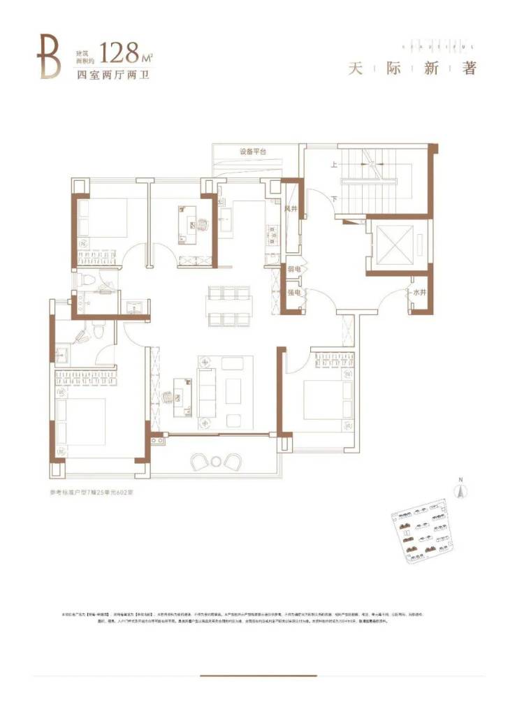 建面约128㎡4房2厅2卫户型
