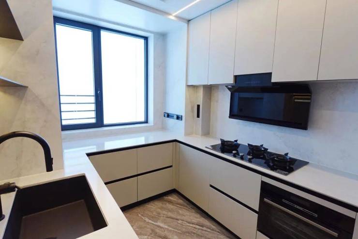 U型厨房设计,动线合理,空间感还不错。