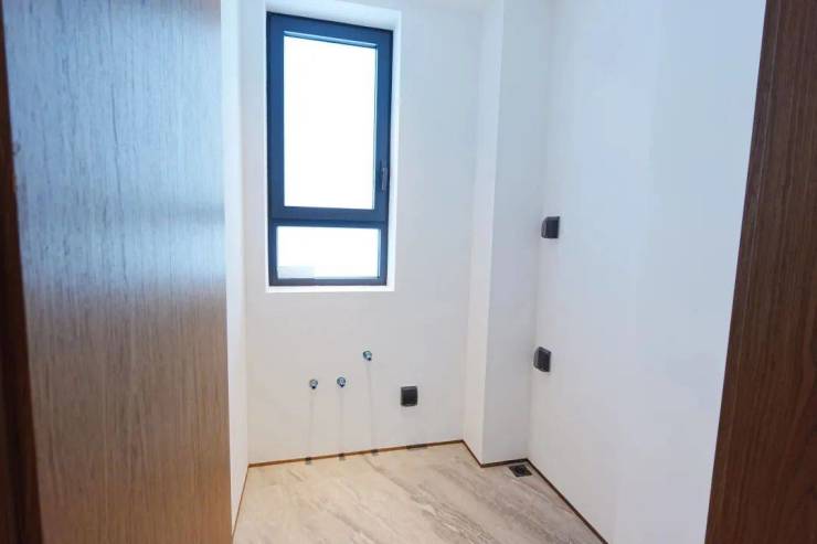 厨房部分,大得不像是107㎡该有尺寸,据说窗口下方位置是飘窗,借一部分空间,因此整体操作空间大大增加,喜欢用小家电的业主,也有更多布置空间了。