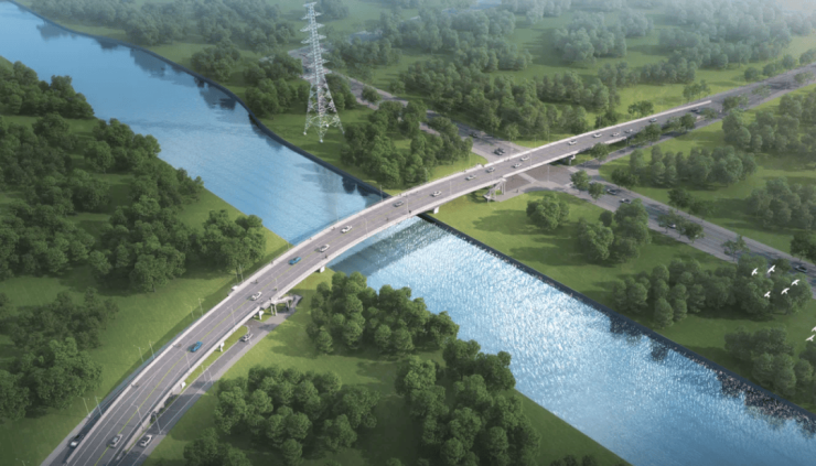 但根据区域规划,未来项目东侧梅富路将会跨春申塘打通,新建跨春申塘桥,目前初步设计已完成,计划于年内动工;