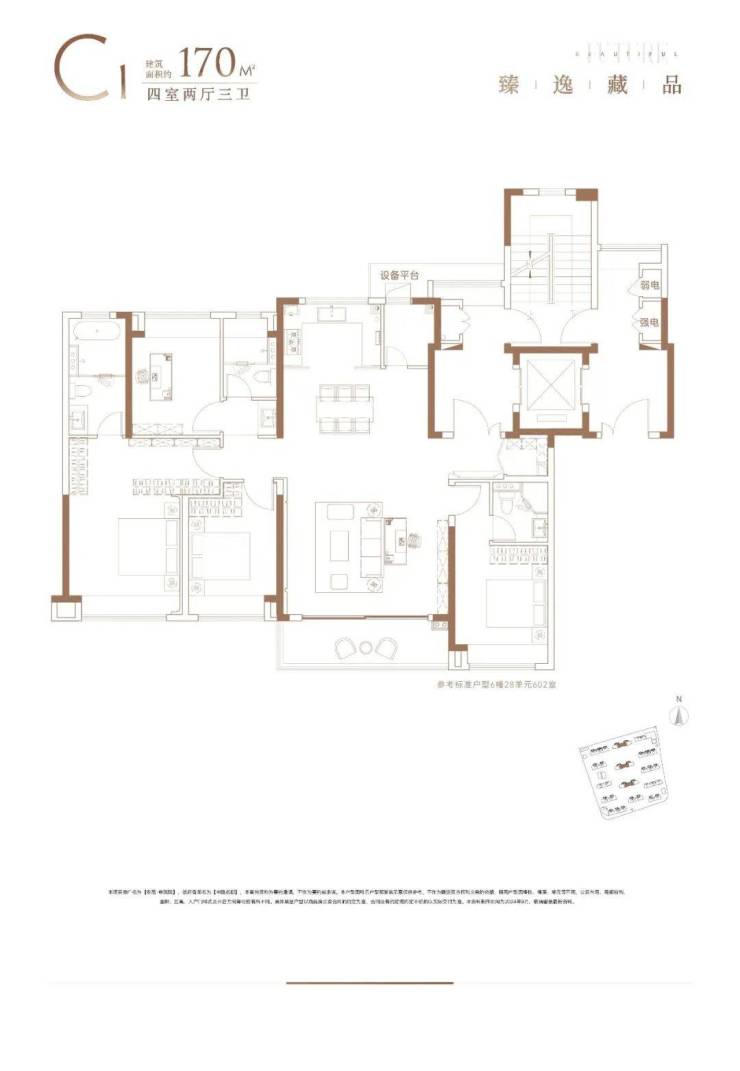 建面约170㎡4房2厅3卫