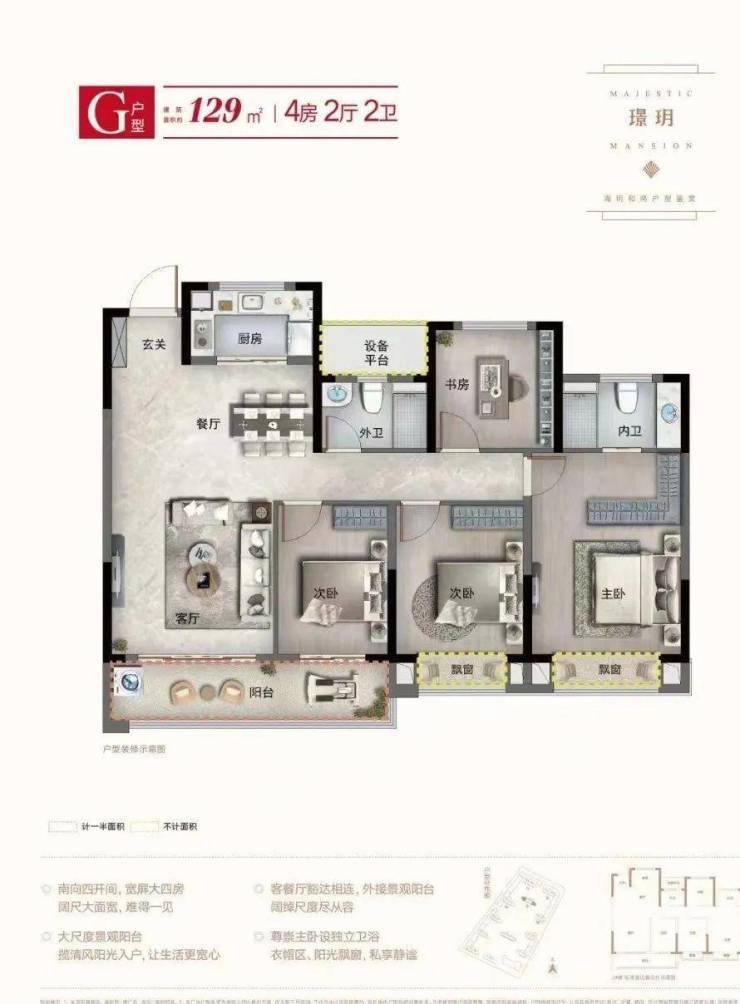 高层G户型 建筑面积约129㎡ 4房2厅2卫