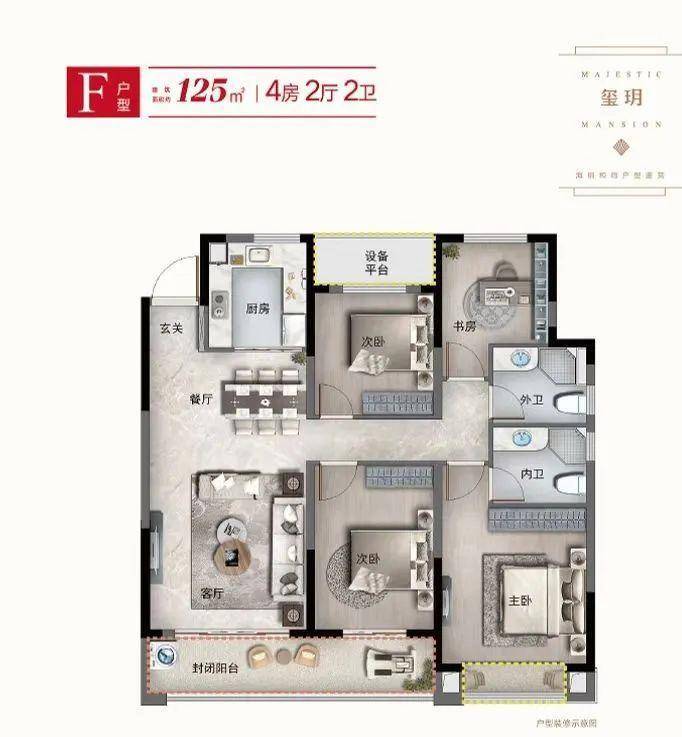 奢华四房:户型全明方正,动静分区,精湛空间布局