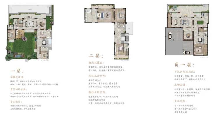 其中建面约450㎡高阶户型,采用L型围合布局,庭院面积最大可达约250㎡,院落与一线翡翠湖湖景连成一片,犹如居住在庄园中。