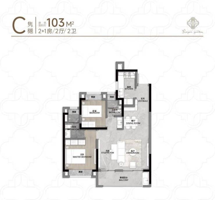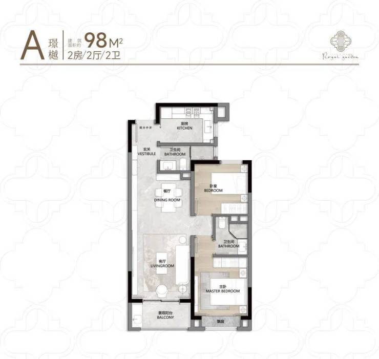 以98㎡两房为例,客餐厅一体化+阔景阳台,主卧套房设计,动静分区明确,收纳空间充足,告别“蜗居感”。