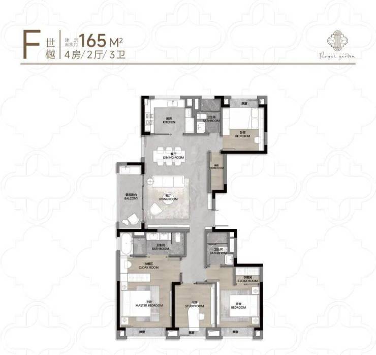 165㎡做了4房设计,适合三代同堂的改善家庭,另外,该户型东边套的中高区还可以看到三件套!