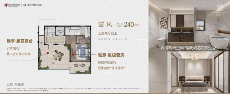 三层整层静区空间,和而独立,私享世外桃源中的悠然情境。外享舒阔转角空中露台,拓展空间边界,随时开启一场露天派对!