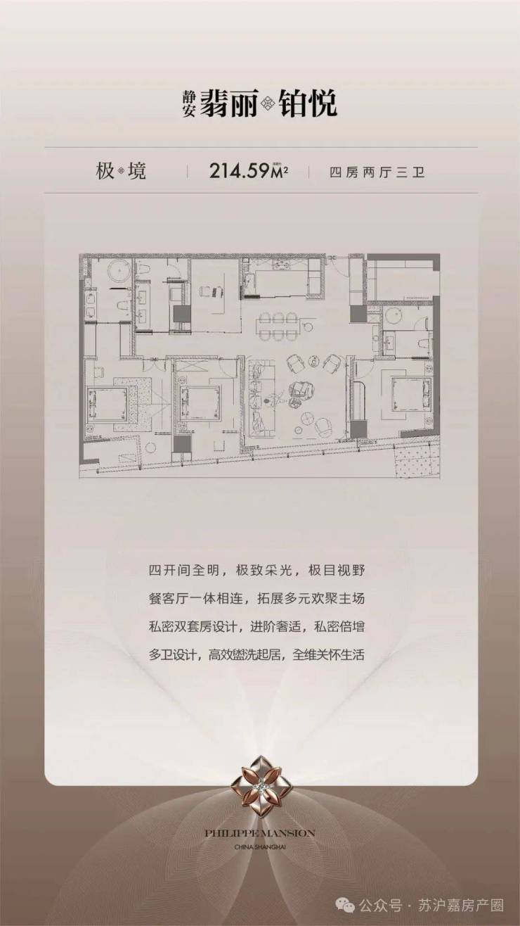 【极境】建筑面积约214.59㎡丨4房2厅3卫(双套房)