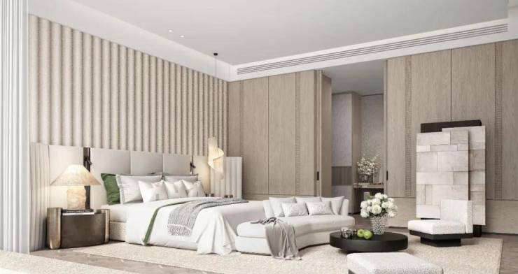 室内设计上,采用LDK一体化设计,带来极具阔正的空间尺度,并以大面米灰、暖灰为主基调,营造出高级优雅的氛围感,同时通过吊灯、艺术玻璃、酒柜等软装艺术作点缀,将艺术与生活融合,简奢中透出时尚前卫,营造出私密、温暖、现代化、国际化及独特的鼎级舒居体验。