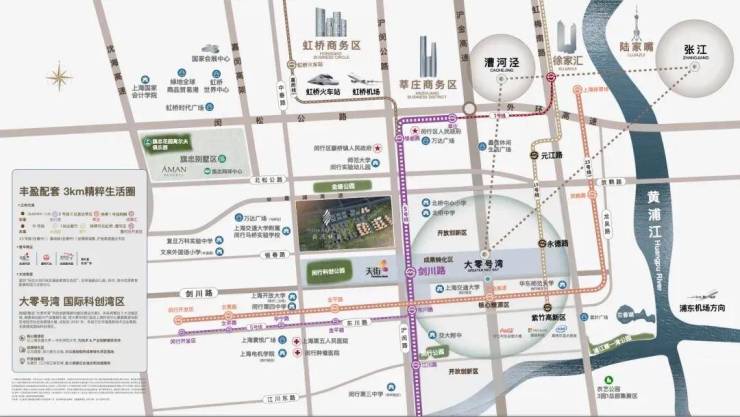 休闲娱乐维度,龙湖闵行天街、万达广场、置业广场、上海寰悦广场、紫叶广场在内的五大高能级商业环伺,高端购物中心、亲子教育、各色餐饮、潮流品牌店等等,繁华生活无需远行,吃喝玩乐游购近在咫尺。