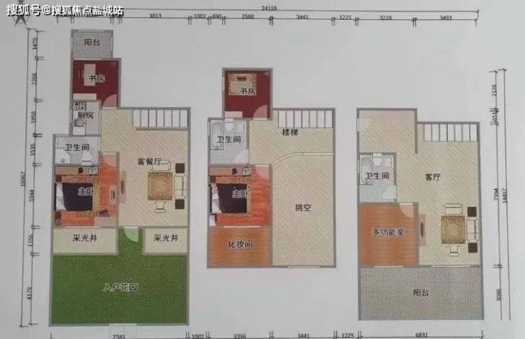 下叠 168-190平,实用面积300平,花园100~250平, 地下室:5.4米