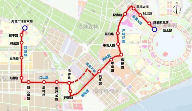两港快线二期工程预计将再新增五个站点,分别为滴水湖站、申港大道站、芦潮港站、泥城站以及四团站。