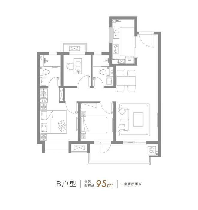 「光明星城售楼处电话:400-000-0460转6666(已认证)预约通道」约95㎡的3房2厅2卫户型,这个户型的实用性太高了。能保证业主从二人世界到二胎家庭的全生命周期需求。另外,次卧+客厅外的超大宽面阳台非常惊艳。主卧的套房设计也能保证主人生活的私密性。这是一个能让业主一步到位的神户型。