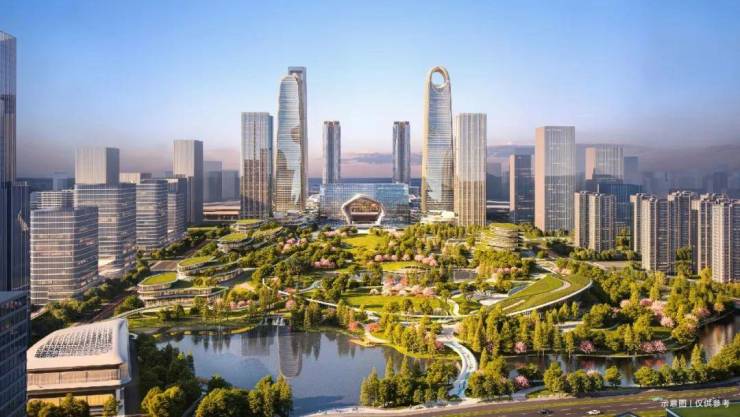 ✦四期「中央绿谷」将构建慢行网络、环形水系等多功能场景