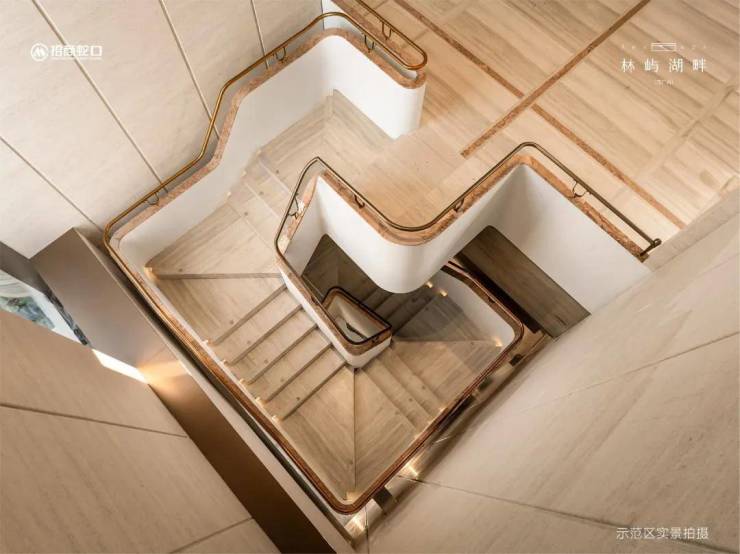 ① 艺术旋转楼梯:整块白木纹石材切割+宝格丽粉镶边