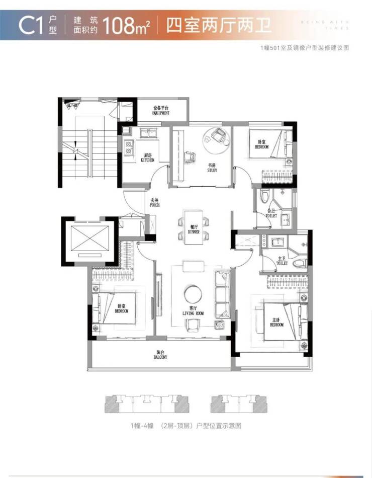 建面约108㎡为四房格局,小高层住宅全部配置珍稀的建面约108㎡宽境四房户型,南向三开间,约10米奢阔面宽,进一步拉伸采光面,约6.5米的阔尺双联阳台,满足生活、瞰景双重需求。同时做到了功能性、舒适性、性价比的完美融合,深受青睐,改善一步到位,不容错过。