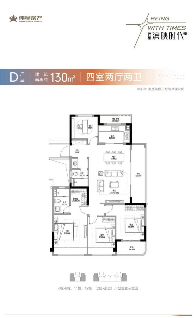 钟爱大面积四房户型的客户,也找到了他们理想中的户型,建面约130㎡轻奢改善四居,南向三开间格局,IMAX级的开阔视野感与空间感,置身其中,自带大气尊贵的居住体验。项目全系装标均采用美的中央空调、老板厨电、科勒卫浴等众多一线大牌家电,搭配高颜值的电视背景墙及全屋壁纸,以星级酒店的精装标准献礼理想生活。