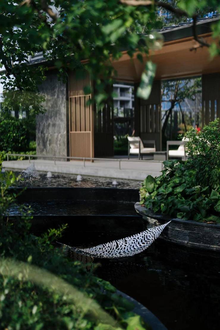 三进礼序的星级酒店式归家礼序,具有很强的仪式感。进入园区,多处叠水与乔木、灌木共同营造的归家空间。