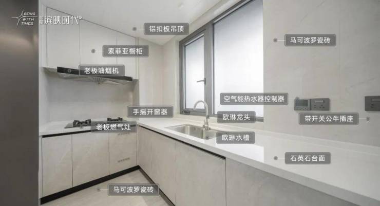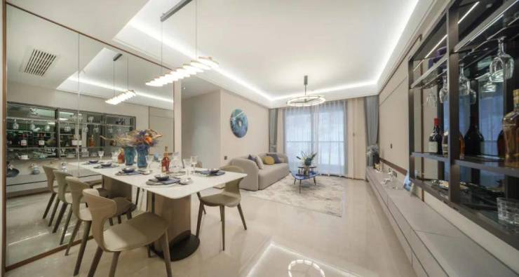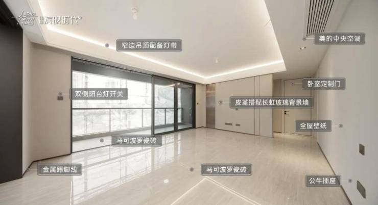 项目的精装配置也非常不错。2500元/㎡的装标下,配置了美的中央空调、老板厨电、科勒卫浴等众多一线大牌家电,甚至连玄关柜、电视背景墙、全屋壁纸都贴心的配置上了。与高产品力形成鲜明对比的,是项目的低价格。