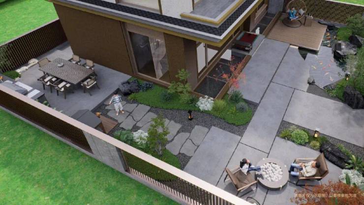 墅居生活的独特魅力,核心是实现人与天地自然的亲密相融。维投·山河墅以打造宽敞舒适大花园为愿景,庭院设计秉持“精益求精”的理念,创新采用约7米南向院落进深设计,将空间使用做到了极致,搭配三开间朝南的空间布局,构筑起空间开阔感与宋式美学交相辉映的庭院雅境。