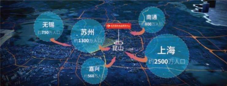项目所在地“昆山市”GDP连续20年位居百强县(市)首位,花桥素有“江苏东大门、上海后花园”之称,全国百强镇综合实力排名第五,紧抓轨交“双11号线”在花桥无缝衔接的重大机遇,做深“虹桥—花桥”双桥联动,打响“上海有虹桥、苏州有花桥”品牌,一小时经济圈辐射人口超5000万,为本项目提供广大消费客群