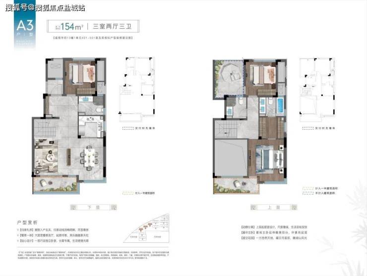 中叠2-3层约154方:三室两厅三卫【可改造】
