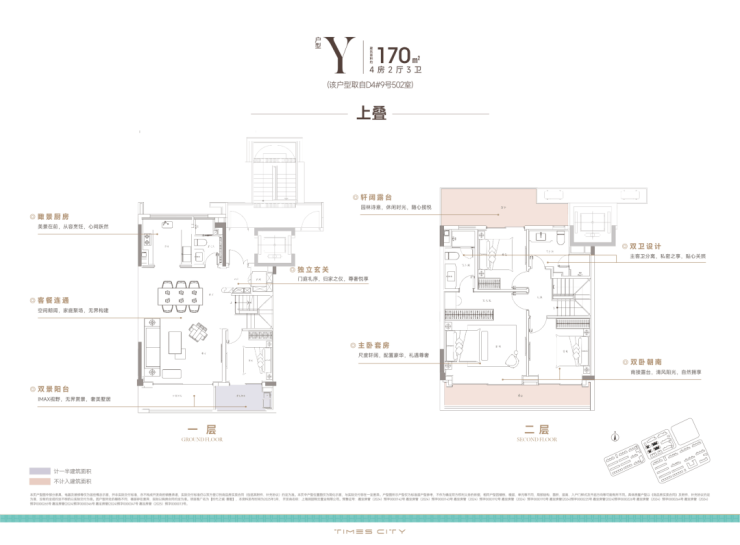 170m²上叠,南向双阳台+南北双露台: