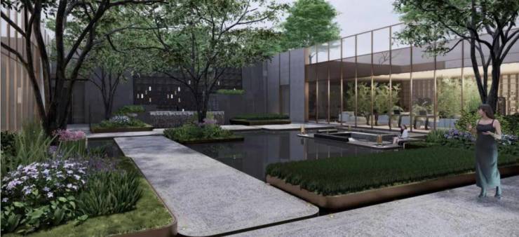 遵循一轴一环式景观布局,打造建面约1000㎡亲子乐园、约610米长的环氧跑道、约1.2万方超尺度景观中庭等多重景观,营造风雅归心臻境