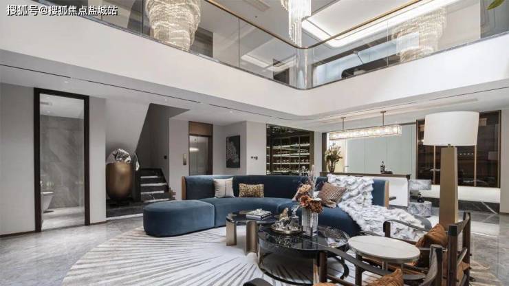 摆上一组沙发,或静坐闲读,或花园晚餐,或邀三五好友欢聚,都有一种悠然自得的安定感。长面宽、短进深格局 来到室内,一楼层高约3.4米、面宽约7米大横厅霸气十足,搭配大面落地窗,阳光清风肆意涌入,将室内映衬的一片明亮,毫无阴影死角。