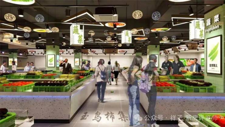 建筑物一共12层,1层为便民生活服务配套,3-12层为公寓,共591户,而玉鸟柿集分布在2楼,层高4•95米,在售面积共2500方,**套,业态分别是蔬菜,水果,肉类,水产,冻品,卤菜,豆制品,禽蛋,净菜区,综合业态;同时配有加工区与特色餐饮小吃铺(现在很多年轻人不愿意做饭,可以在市场购买新鲜食材进行加工,可堂食可配送)支持线上下单,线下配送满足消费者多样化需求;