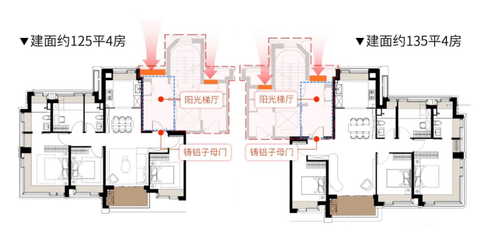 四房产品配备类一梯一户设计,以及市场罕见的阳光梯厅!