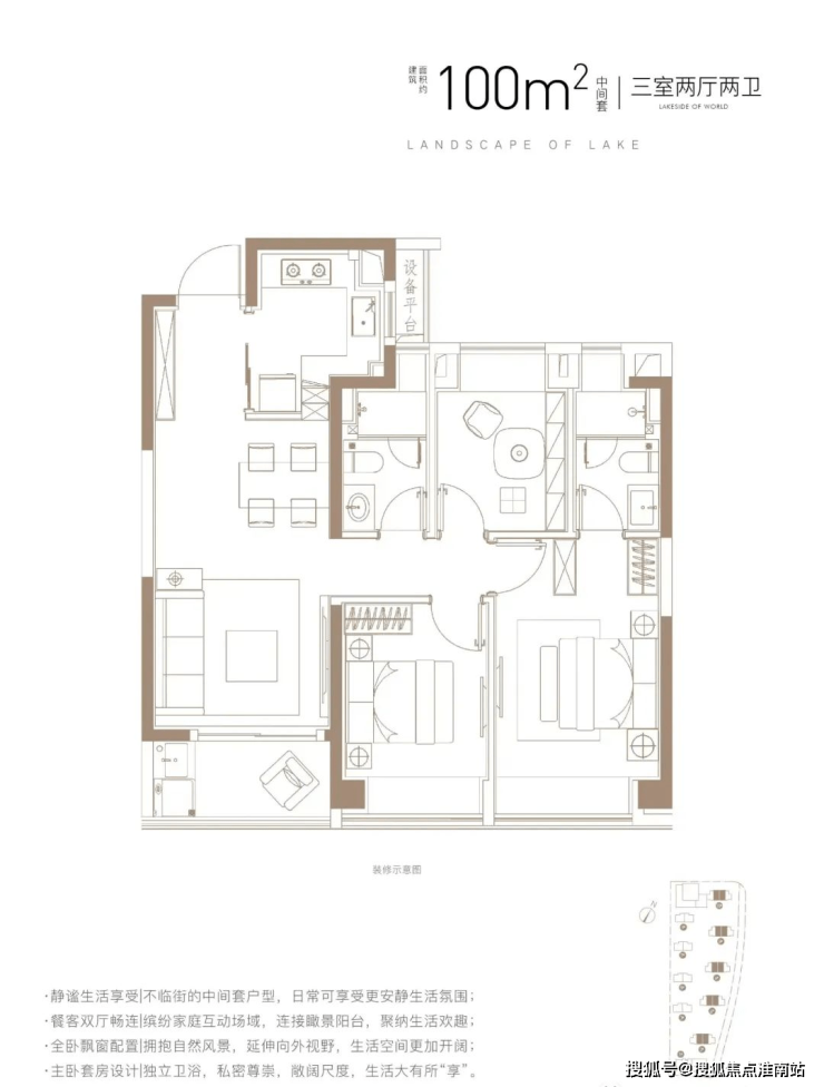 建面约100㎡3房B户型(中间套)
