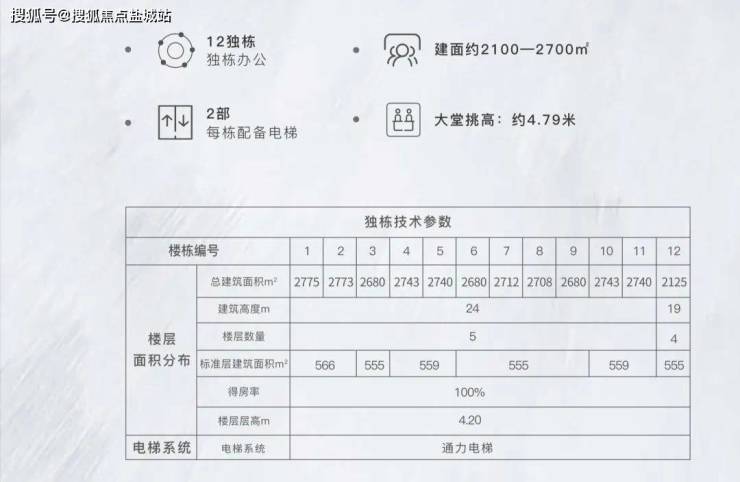 【层高】:一层挑高约4.8m,二到五层高约4.2m,打造开阔办公空间