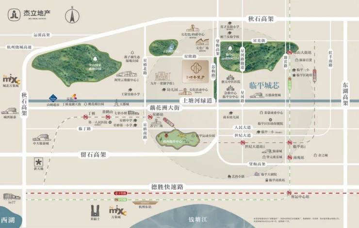 项目周边的配套更是“宛若星辰”般璀璨,一路之隔即是临平山公园,银泰城、余之城等商业串联成珠,浙大二院临平院区、临平南站、艺尚小镇等配套聚集,繁华日新月异。