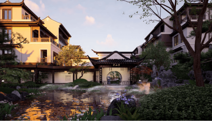 建筑是生活的容器,更是精神的图腾。绿城·春熙桃源摒弃浮华的现代迭新建筑风格,回归东方建筑美学本源。飞檐戗角,雕梁画栋,一砖一瓦皆遵循中式建筑礼制与比例。它不止于形似,更追求神韵,旨在为当代世家,营造一个兼具仪式感、安全感和文化认同感的家,让传统雅致的生活方式在现代得以安放。