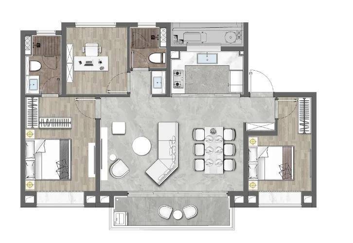 建面约114㎡户型 3/2/2