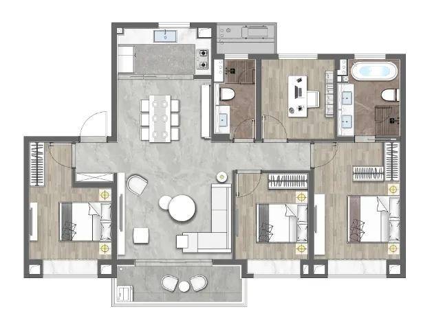 建面约142㎡户型 4/2/2