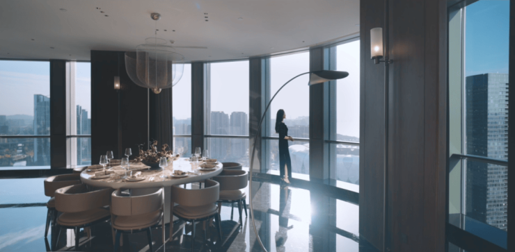 你可以理解为,七星潮鸣的每一层空间,都像是一座小型奢华酒店,房屋内外浑然一体,精致奢华。