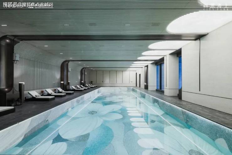 25x8 半标无边界泳池, 池 底运 用了繁花马赛克,墙面与地面均使用大理石,天花板则运用发光玉石与造型艺术板,背景墙为LV同款定制双C造型艺术板 ,让这个泳池更平添一份艺术氛围。