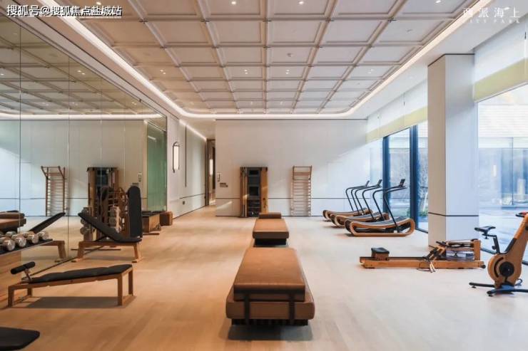 而细节上, 全会所健身器材采用豪宅标配的进口健身品牌 waterrower 的划船机、NOHrD 跑步机、健身车 等,低调而奢华。