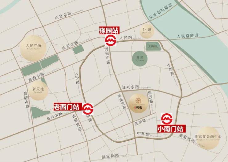 交通网络更是四通八达,呈现出“一桥三环四线五隧道”的立体格局。轨道交通方面,项目邻近四条地铁线路,步行约10分钟可达9号线小南门站、8号线老西门站,以及10号线与14号线豫园站,快速链接全城核心节点。隧道交通同样便捷,外滩隧道、新建路隧道、延安东路隧道、人民路隧道及复兴东路隧道环伺,轻松跨越浦江,畅行无阻,为居者提供了高效便捷的出行体验。