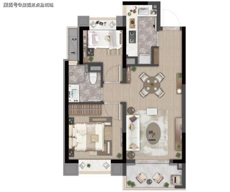 C户型 建面约88㎡ 三室两厅一卫
