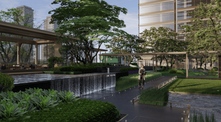 4幢楼,最大115米的楼间距围合成约1.6万㎡的巨大园区景观,借鉴曼谷湄南河四季酒店的设计,让孩子们肆意挥洒童年的汗水。