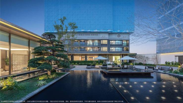 引水入园,打造“两轴·一心·多模块”,营造一步一景的七重松弛之境,沉浸自然度假式归家感受。