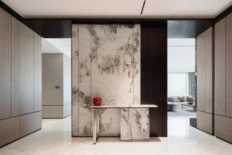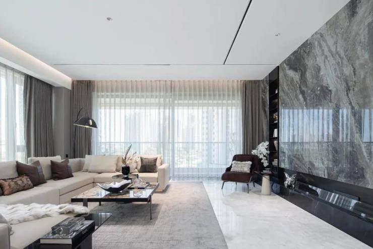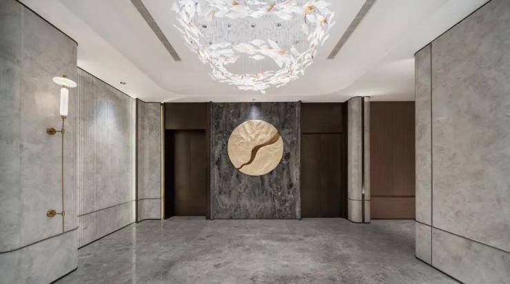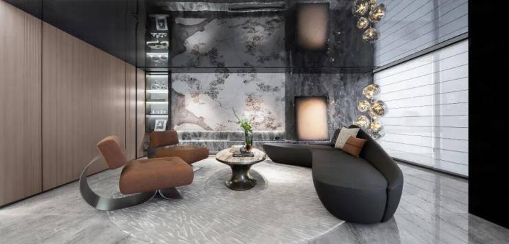 大面积幕墙、铝板、石材经“HARRY WINSTON”钻石打磨般切割工艺,营建如水奔涌的轻盈线条、大小各异的丰富立面形态,立标极简内敛的当代风尚。